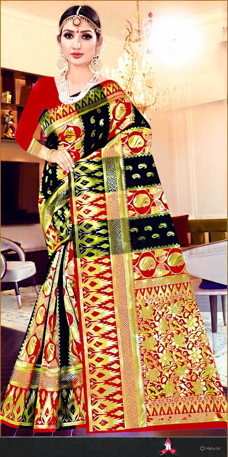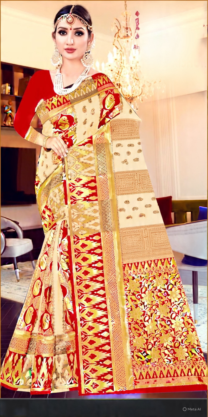 Exquisite Craftsmanship: Saree par bane huye traditional motifs aur floral patterns ise ek royal look dete hain.